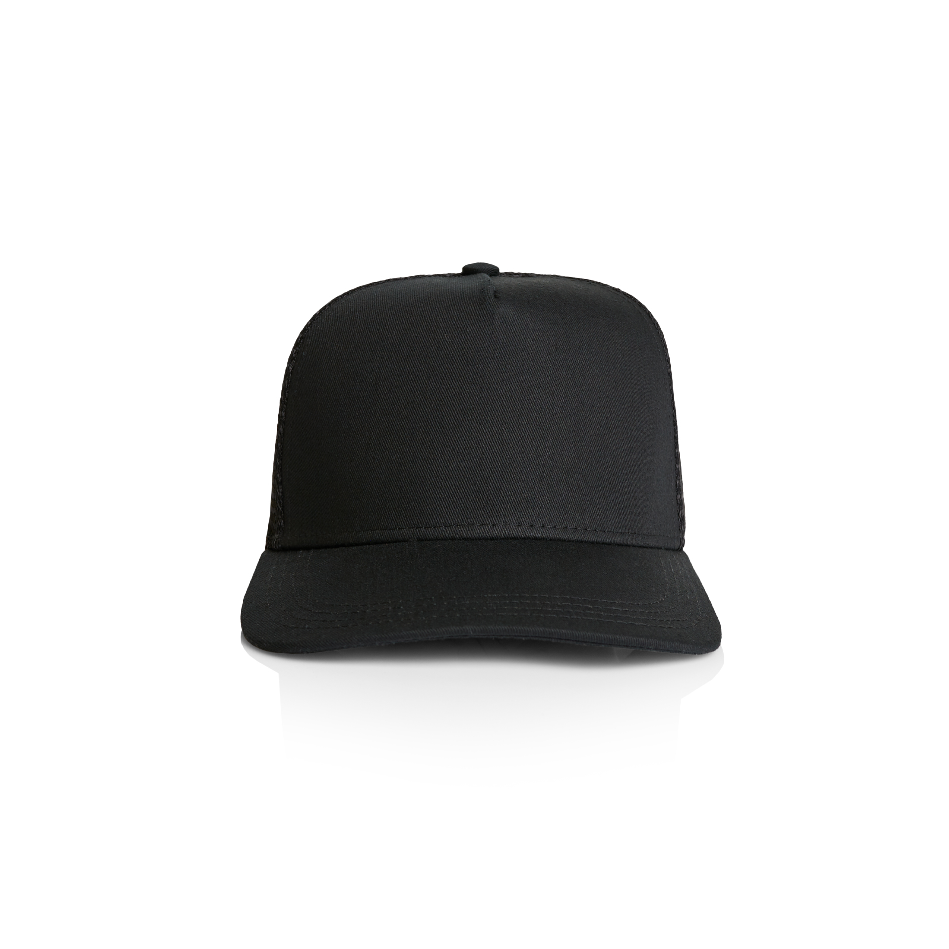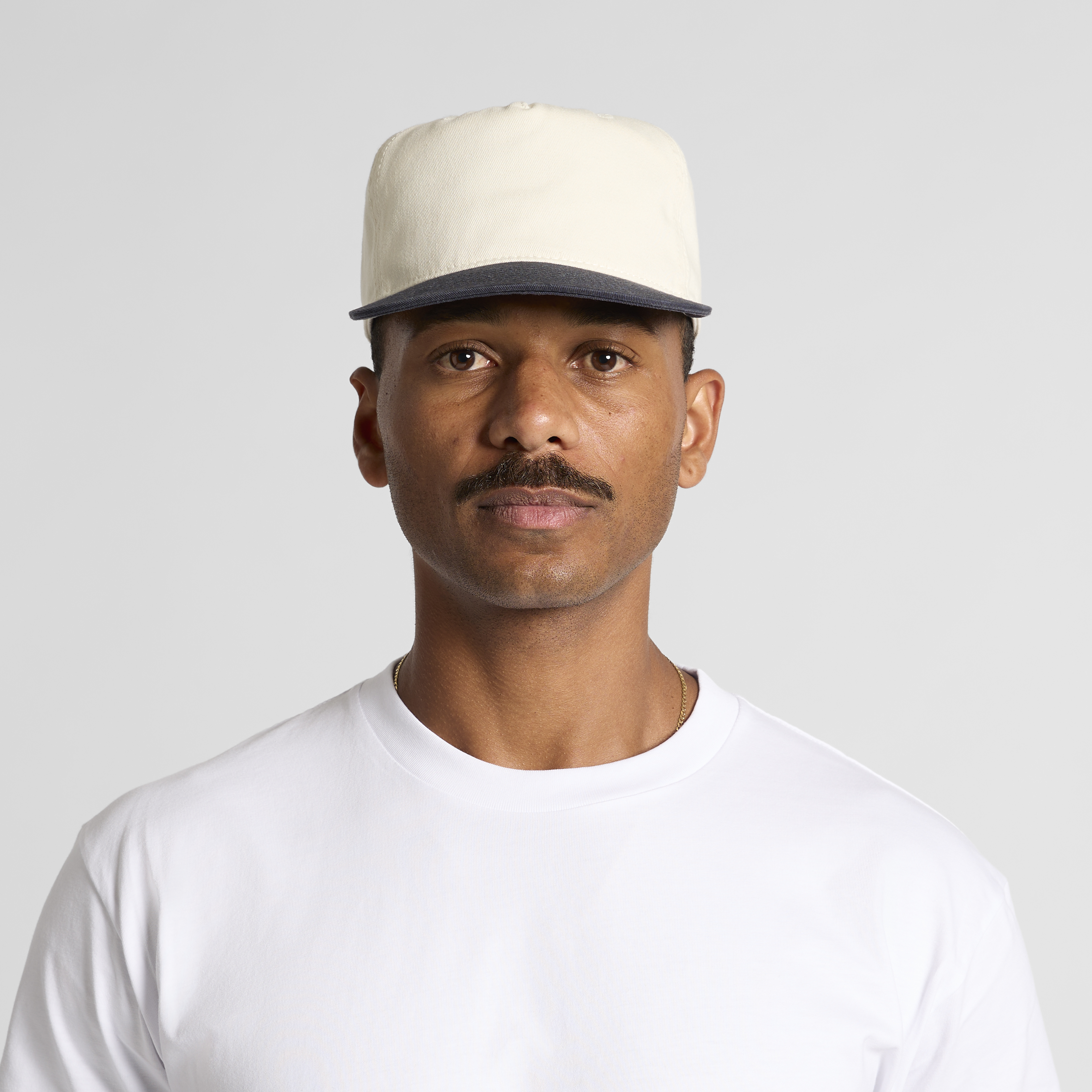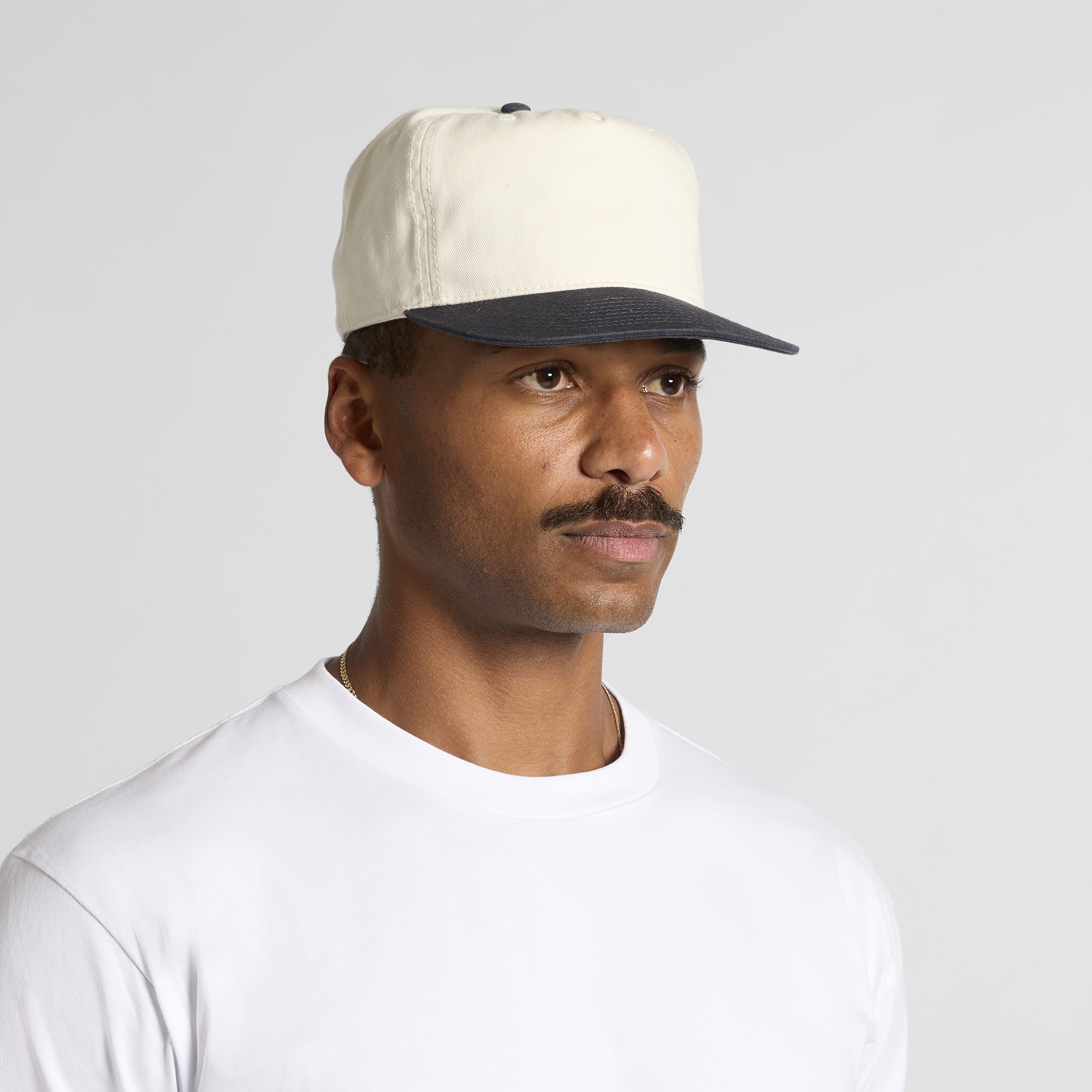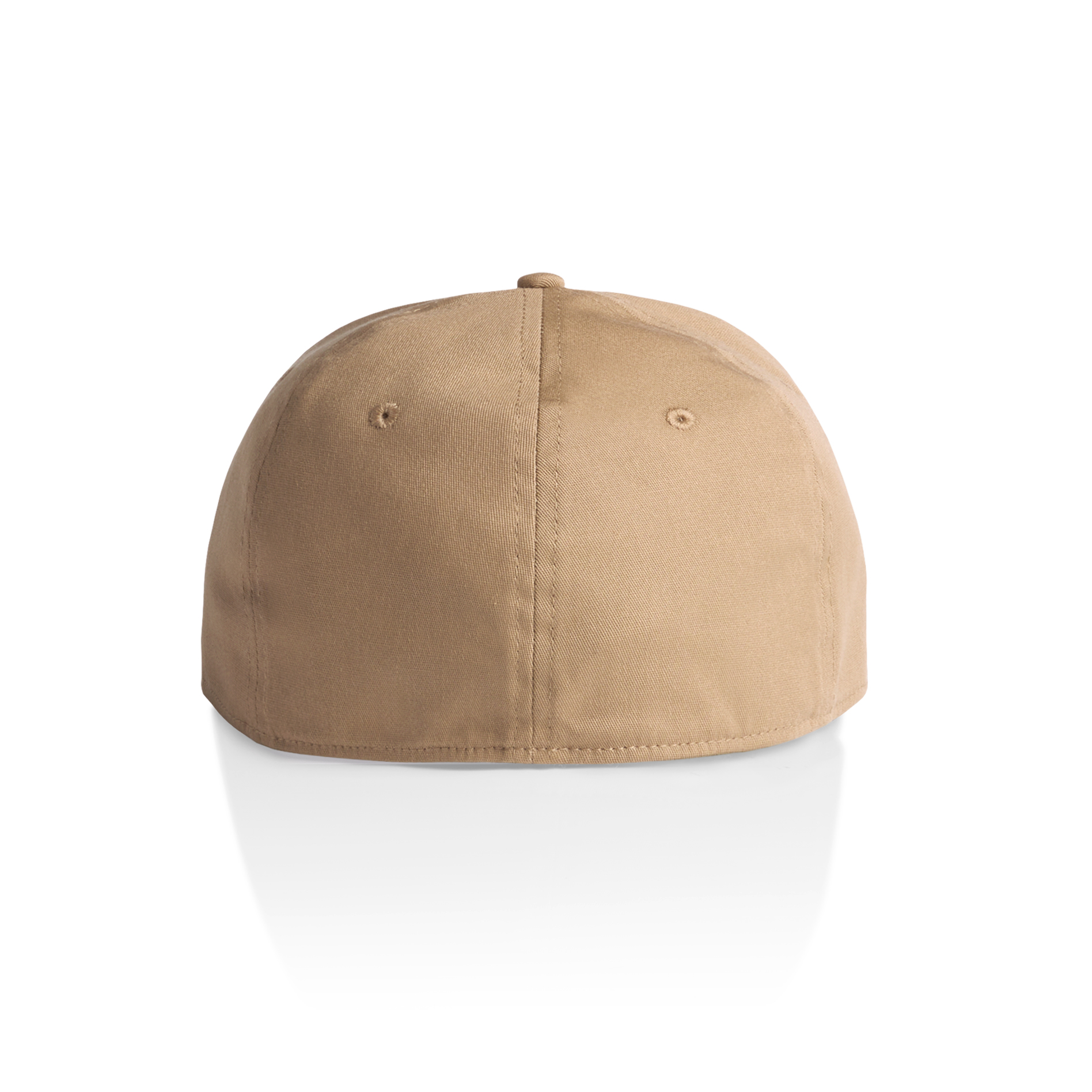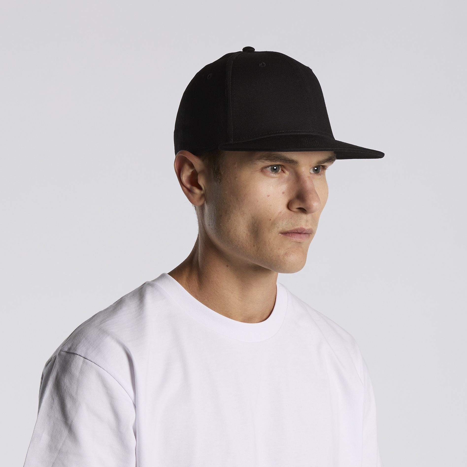Low profile, five panel cap, internal mesh structure support, flat peak