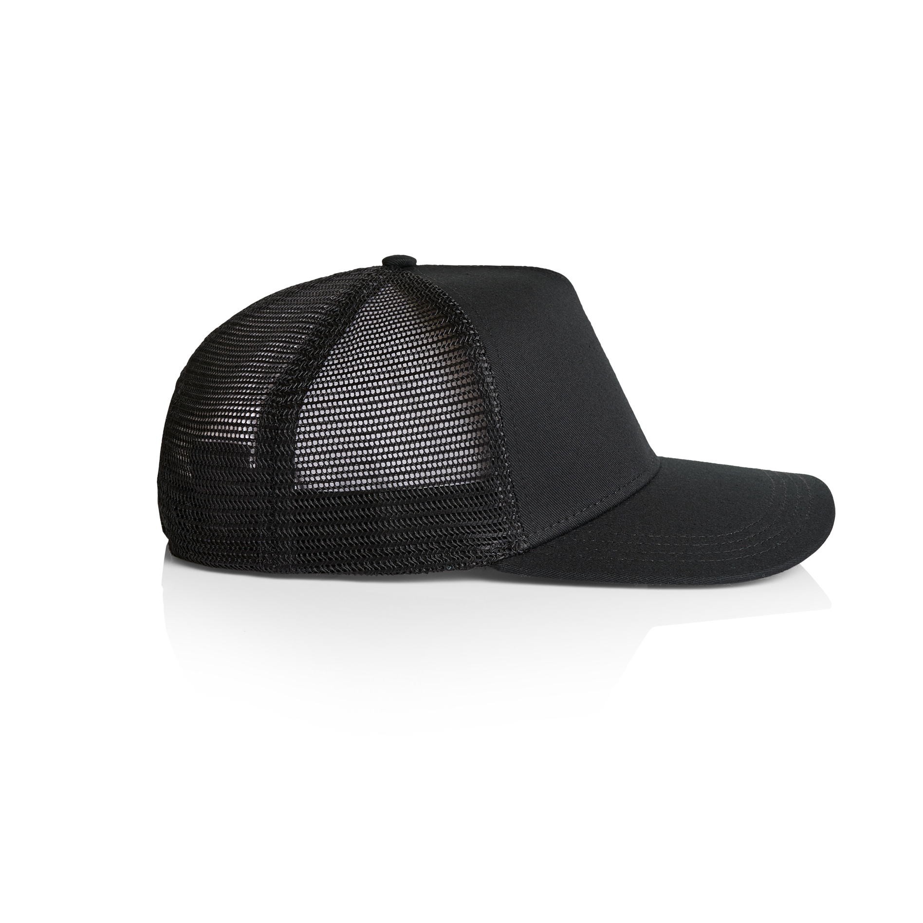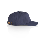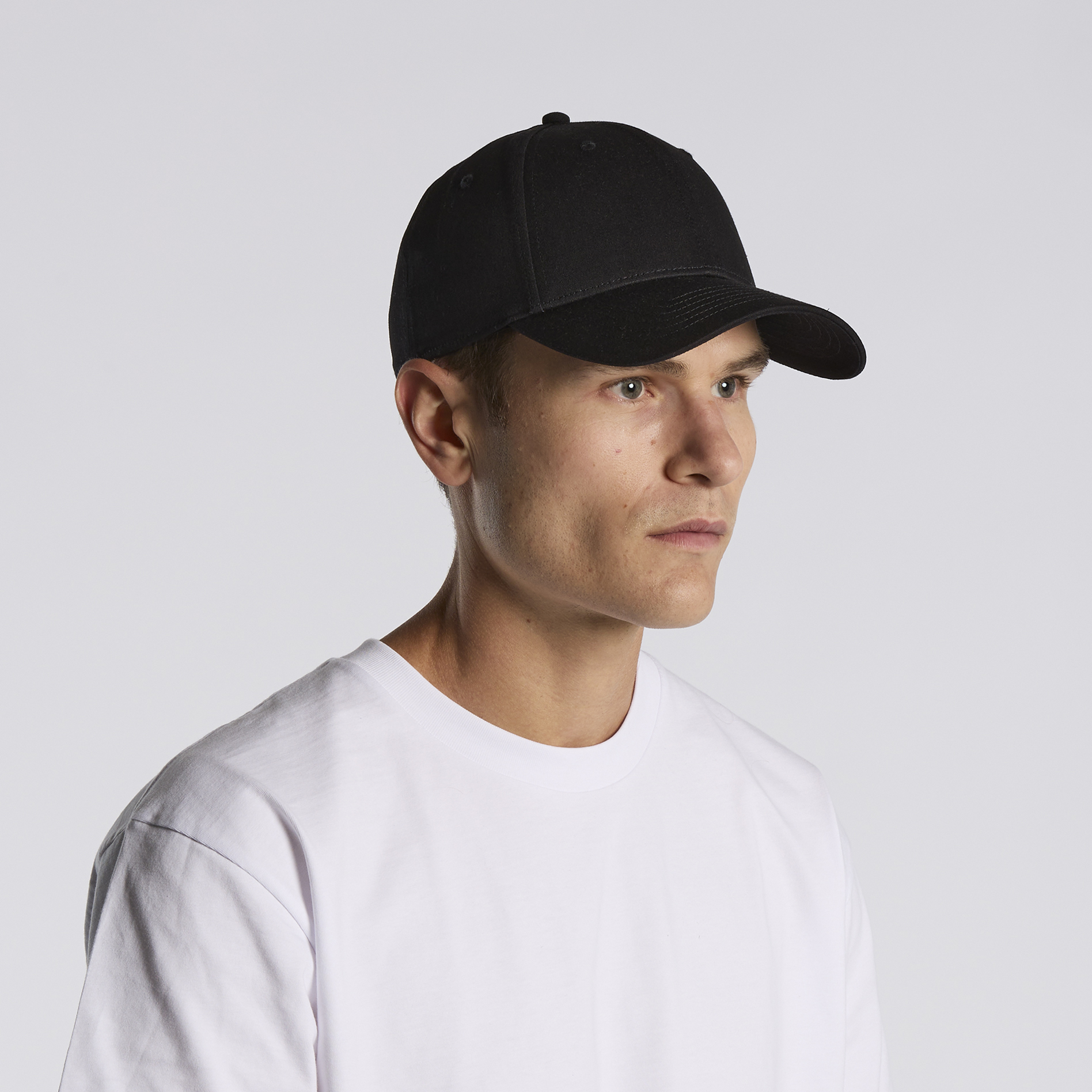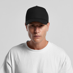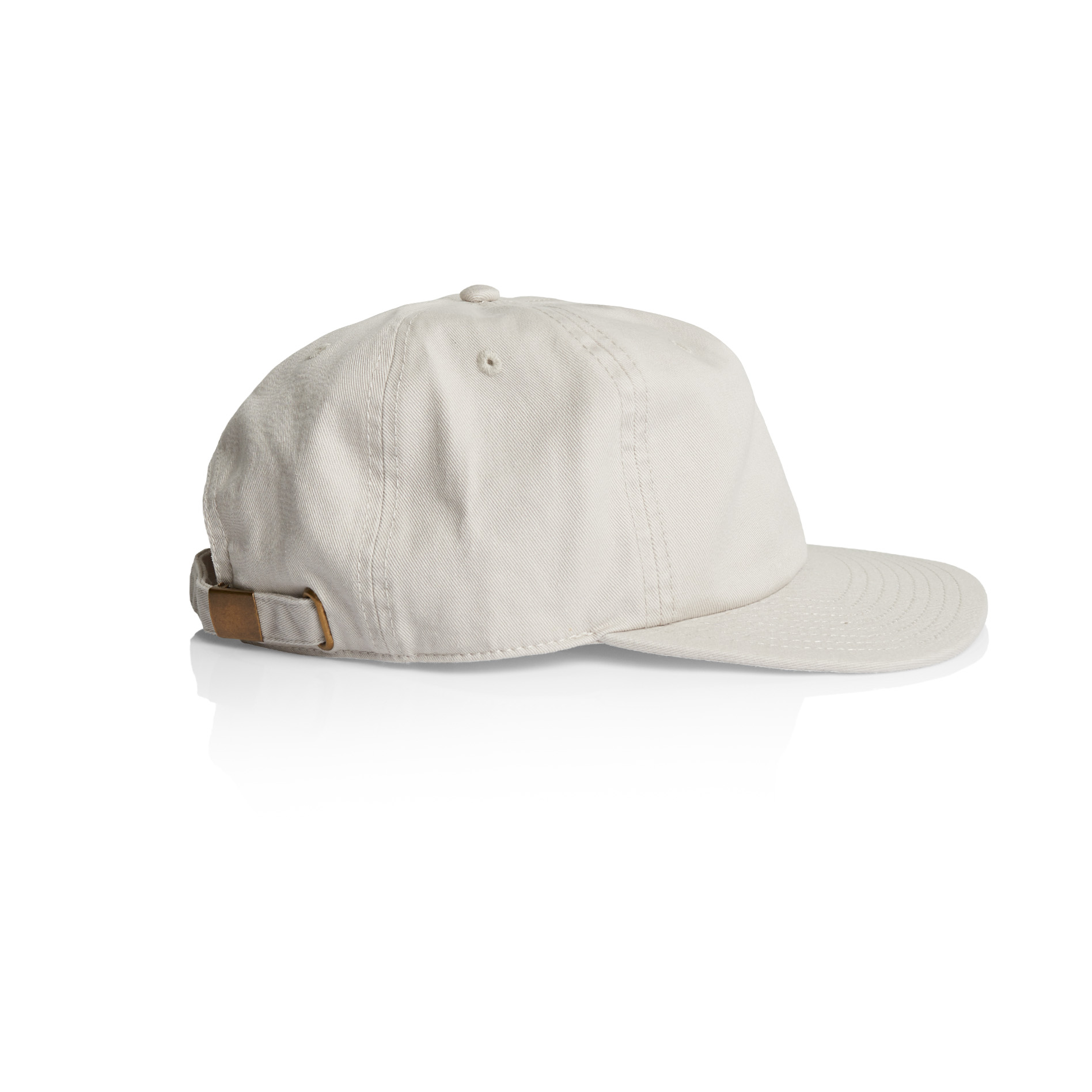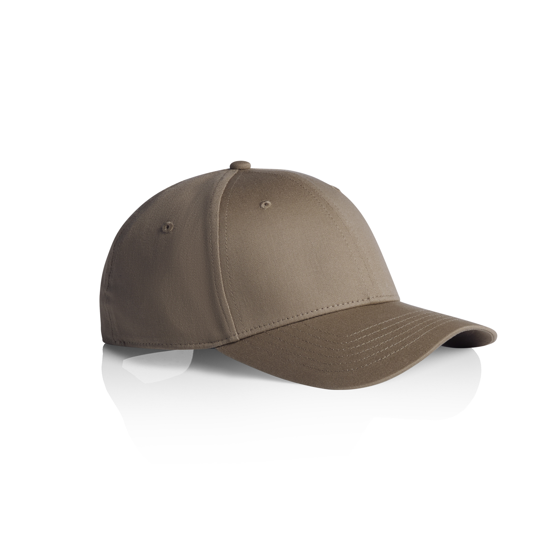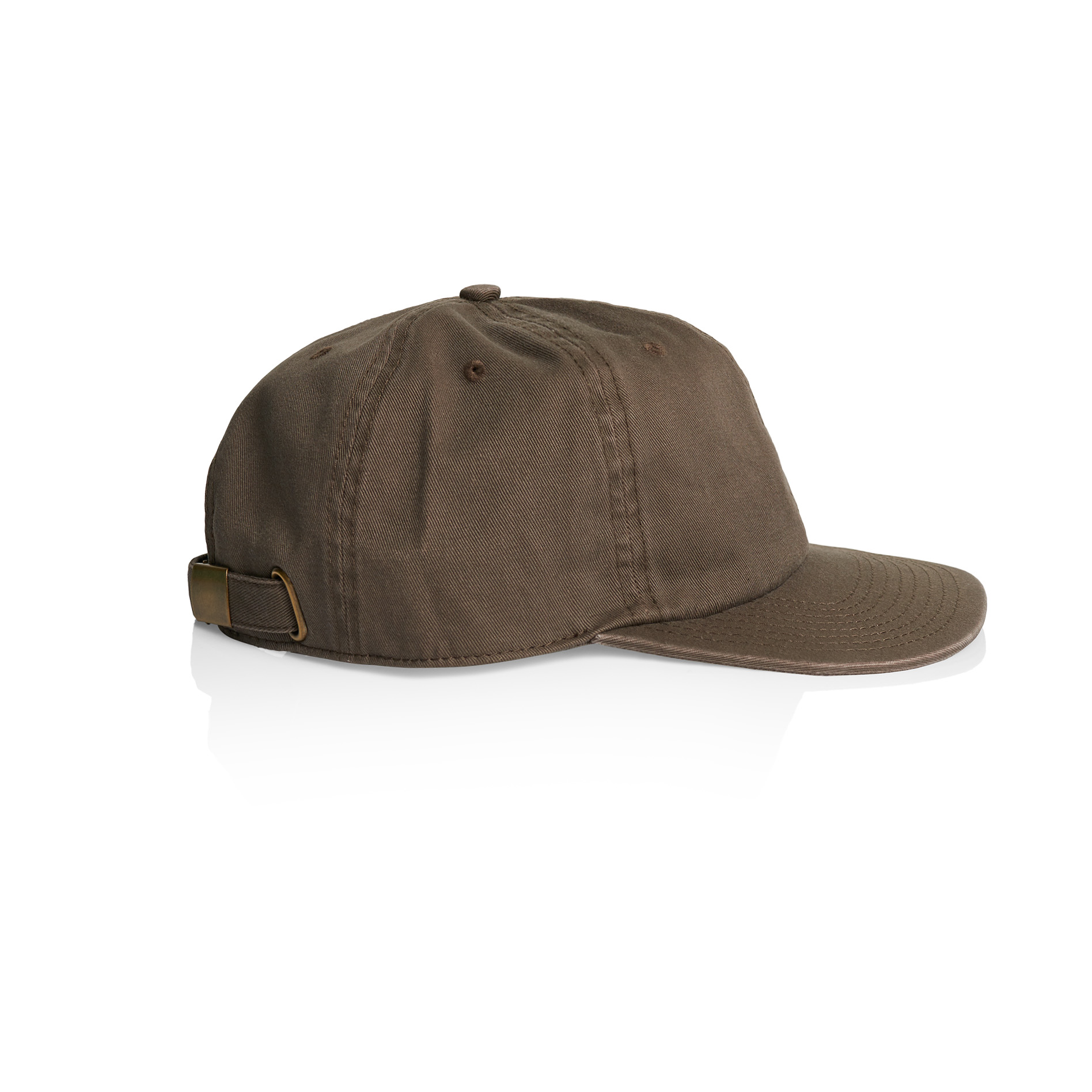 Low profile, five panel cap, internal mesh structure support, flat peak