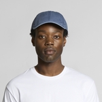 Self-fabric covered Velcro strap to close , stretch unstructured body, tonal under-peak lining
