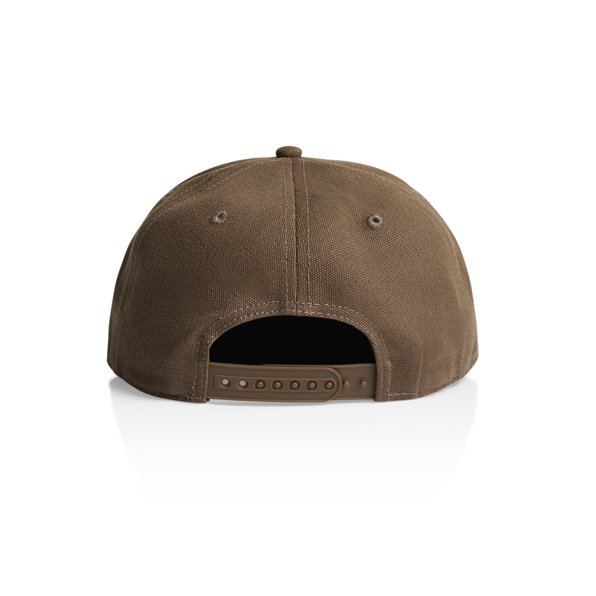 Structured front, contrast dome, plastic snapback, curved peak, tonal eyelets, one size fits all
